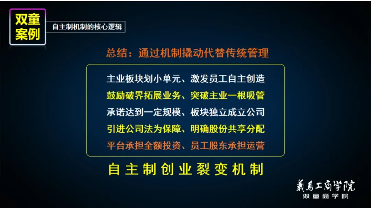 就像雙童平臺第五創(chuàng )業(yè)體總經(jīng)理周上,沒(méi)有被機制推動(dòng)之前,她做了7年的“無(wú)憂(yōu)無(wú)慮”的“小科長(cháng)”,但通過(guò)裂變機制從員工向創(chuàng )業(yè)者角色轉換后,僅用3年的時(shí)間,自我驅動(dòng),成為雙童平臺成長(cháng)最快的創(chuàng )業(yè)體總經(jīng)理!