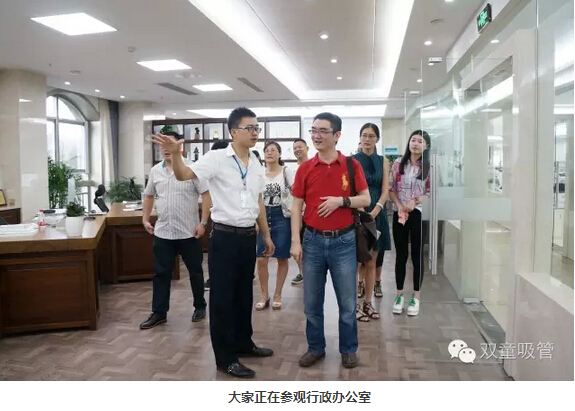 一到雙童的行政辦公室,大家對這樣細膩簡(jiǎn)約、極致精細的辦公環(huán)境很好奇。二當家李二橋向大家介紹雙童的七八十號行政員工都在這里進(jìn)行集中辦公,聽(tīng)到這里,大家都紛紛稱(chēng)贊雙童和諧開(kāi)放的辦公氛圍。