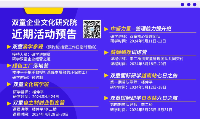 為了能夠助力更多中小企業(yè)也能運用這套機制實(shí)現激勵員工、留住優(yōu)秀人才和業(yè)績(jì)倍增,雙童商學(xué)院早在2022年,雙童商學(xué)院就針對該機制打磨成《自主制創(chuàng )業(yè)裂變營(yíng)》課程,并不斷地升級迭代,該課程已經(jīng)是一套非常成熟的、可復制、可實(shí)踐的課程,完全契合中小微創(chuàng )業(yè)者的需求。