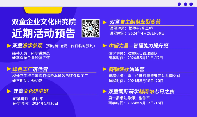 創(chuàng )業(yè)不易,制造業(yè)尤甚。在保住“巧姨”辛苦攢下的基本盤(pán)(存量)前提下,又能讓員工受益、讓企業(yè)再上一層樓,這是“雙童”的裂變機制被余總堅定選擇的原因之一。正如雙童商學(xué)院執行院長(cháng)周上在上述致辭中所講的:自主制創(chuàng )業(yè)裂變這套機制不是存量的博弈,我們更多講的是價(jià)值的共同創(chuàng )造。