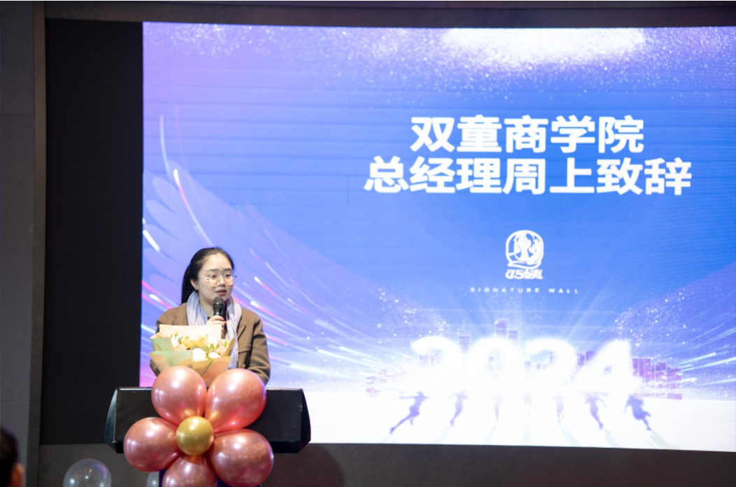 2023年底,湖南巧姨清潔用品有限公司在舉辦年會(huì )當天,正式啟動(dòng)了創(chuàng )業(yè)共享平臺儀式,雙童商學(xué)院執行院長(cháng)周上前往儀式盛典現場(chǎng)并致辭。