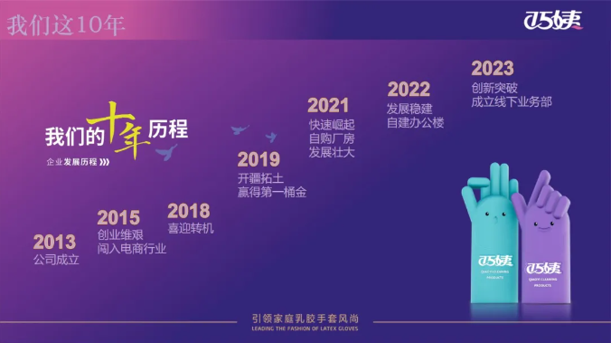 終于在2018年,迎來(lái)了轉機,也開(kāi)始了線(xiàn)上全平臺布局,2022年產(chǎn)品覆蓋率已經(jīng)達到全國90%的地區,主打產(chǎn)品——“巧姨”牌清潔手套,復購率達到70%以上。近兩年我們又從電商拓展到線(xiàn)下銷(xiāo)售渠道網(wǎng)絡(luò ),探索全平臺、全渠道發(fā)展模式!“巧姨下一階段的目標是成為清潔手套行業(yè)的“隱形冠軍”!”