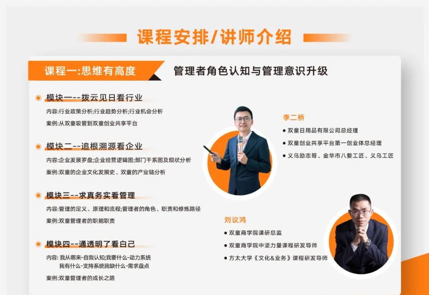 該課程學(xué)制為4個(gè)月,每月交付2天完成一個(gè)課程主題學(xué)習,循環(huán)開(kāi)班。為了不耽誤企業(yè)正常運轉,更好安排中層管理集中學(xué)習,開(kāi)課時(shí)間一般會(huì )安排在周六日。