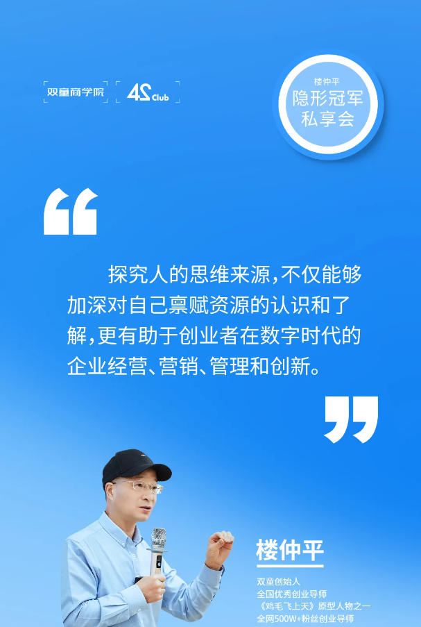 本期,樓仲平老師將攜手薛元昊老師,通過(guò)三天時(shí)間鍛煉私享會(huì )學(xué)員們的創(chuàng )新思維與多元思維,從底層打通商業(yè)認知,交付哲科思維和商業(yè)高認知!