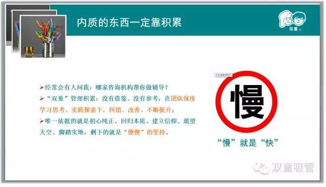 當家人樓總分享:我們“雙童”不排斥任何商業(yè)模式,但我們始終認為“雙童”是一家“慢”公司。這個(gè)“慢”不是真的慢,“雙童”發(fā)展二十多年,在成長(cháng)的道路上并不慢。我說(shuō)的這種“慢”其實(shí)是不會(huì )在浮躁社會(huì )環(huán)境中“人云亦云”,不會(huì )根據外界的聲音過(guò)度改變自己的發(fā)展方向,也就是我們經(jīng)常說(shuō)的“初心”。作為我來(lái)說(shuō),我寧愿“雙童”走得慢一點(diǎn),穩一點(diǎn),也不愿意它走錯一步。