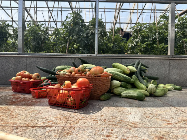 廠(chǎng)區內所有的生物質(zhì)垃圾早上都會(huì )投放到生物垃圾發(fā)酵池里,過(guò)了十天至半個(gè)月,發(fā)酵池儲滿(mǎn)之后,再把這些垃圾投放到菜園作為天然的養分,所以長(cháng)此以往,土壤肥力很高,瓜果自然年年大豐收!