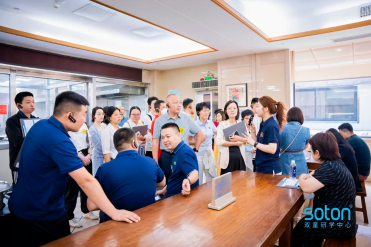“雙童”有屬于自己的獨特的辦公室文化,在這里,不論是董事長(cháng)樓總還是總經(jīng)理李總,都是集體辦公的。那這種“獨特”的辦公環(huán)境,是如何緊密工作聯(lián)系、提升辦公效率的?在游學(xué)的過(guò)程中,講解員都一一為大家詳細解答,讓學(xué)員們了解“雙童”企業(yè)文化和工作模式背后的原因。