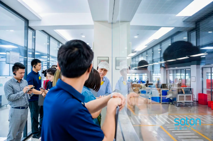 在參觀(guān)通道上,即便是有一玻璃之隔,也能夠清楚地看到“雙童”全生物可降解車(chē)間的生產(chǎn)工藝流程,學(xué)員不僅能看到吸管的制作過(guò)程,了解“雙童”精細化管理背后的產(chǎn)品制作工序,滿(mǎn)足好奇心;還可以在講解員的解讀下,了解“雙童”不采用高自動(dòng)化的流水線(xiàn)的原因,以及“雙童”小客戶(hù)原則在生產(chǎn)現場(chǎng)中的體現。