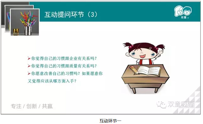關(guān)于最后一個(gè)問(wèn)題,都不用吸管妞讓大家舉手,大家就已經(jīng)異口同聲地說(shuō)出了答案:真正的產(chǎn)品質(zhì)量是用“心”做出來(lái)的!看來(lái)大家在之前的課程上學(xué)到的知識都還沒(méi)有忘記呢!點(diǎn)個(gè)贊!