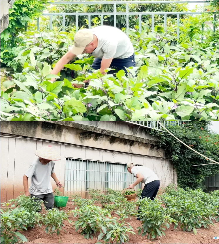 一走進(jìn)菜園,當家人樓總就帶著(zhù)小伙們開(kāi)啟“戰斗”模式,毫不夸張,只一會(huì )兒功夫,黃瓜、番茄被裝滿(mǎn)了一筐又一筐,這種在工廠(chǎng)里也能貼近自然的農家生活,真的超幸福!