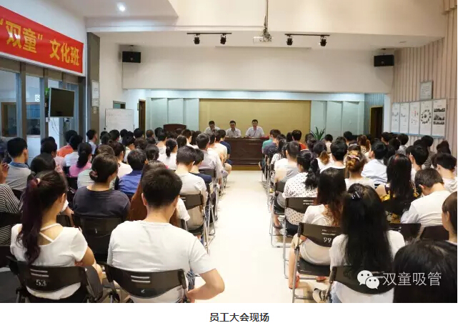 7月16日,“雙童”九樓閣熱鬧極了!原來(lái)我們雙童吸管在舉辦2016年第二季度的員工大會(huì )呢!我們的“高層三巨頭”總經(jīng)理李總、吳副總、李廠(chǎng)長(cháng)出席了這場(chǎng)大會(huì )。