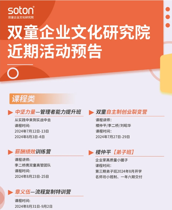 為了助力更多中小企業(yè)也能運用這套機制實(shí)現快速增長(cháng),早在2022年,雙童商學(xué)院就針對該機制打磨成《自主制創(chuàng )業(yè)裂變營(yíng)》課程。