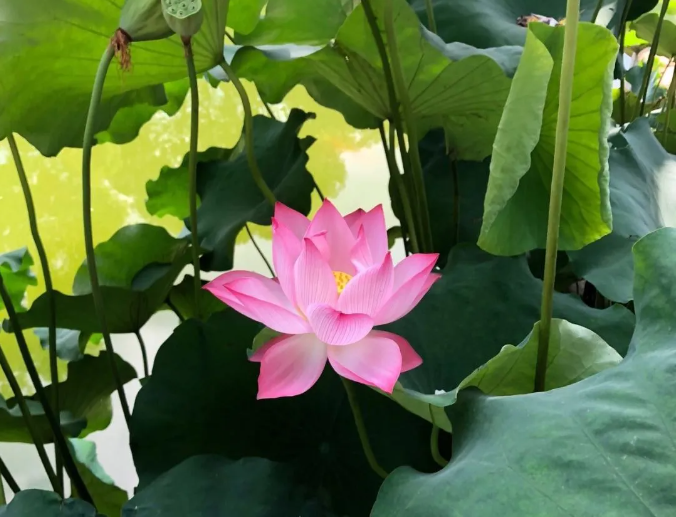 景觀(guān)池中還長(cháng)出了許多蓮蓬呢!