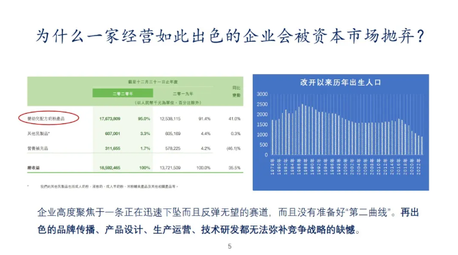 面對競爭戰略這一抽象宏大的命題,鄧地老師在課程開(kāi)始前,先通過(guò)企業(yè)競爭行為的生物學(xué)溯源,向大家展示了競爭行為存在的普遍性;緊接著(zhù)又借助某奶粉巨頭企業(yè)因產(chǎn)品單一、對競爭戰略缺乏長(cháng)遠性的把握,從鼎盛發(fā)展時(shí)刻到不被資本市場(chǎng)看好的轉變,讓學(xué)員意識到競爭戰略對企業(yè)的重要性。