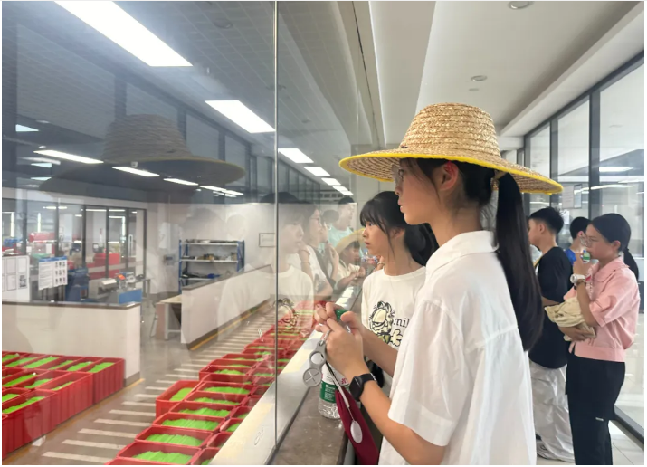 倒數第三站,同學(xué)們來(lái)到了“雙童”生物可降解吸管生產(chǎn)車(chē)間的參觀(guān)通道,透過(guò)這扇特殊的窗口,大家親眼見(jiàn)證了“雙童”可降解吸管從原材料到成品的全套生產(chǎn)工藝流程,每一個(gè)細節都顯得那么精密而高效。