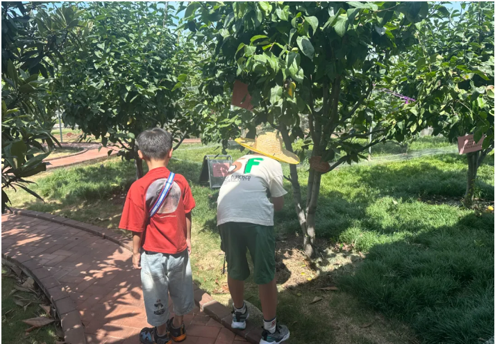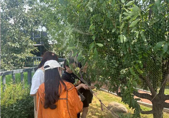 樹(shù)上的果實(shí)引起了小朋友們的注意,有小朋友天真地發(fā)問(wèn):“咦,這些李子怎么是青色的,是不是還沒(méi)長(cháng)大,不能吃呢?”其實(shí)這是青李子的獨特之處,即便它們已經(jīng)完全成熟,依然保持著(zhù)青翠欲滴或是略帶金黃的顏色,是自然賦予的特別風(fēng)味~