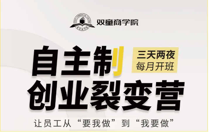 而《自主制創(chuàng )業(yè)裂變營(yíng)》就是依托該機制,把“雙童”的落地實(shí)操方法與成功經(jīng)驗經(jīng)驗有機結合,不斷打磨、升級的一套針對中小微企業(yè)的管理課程。