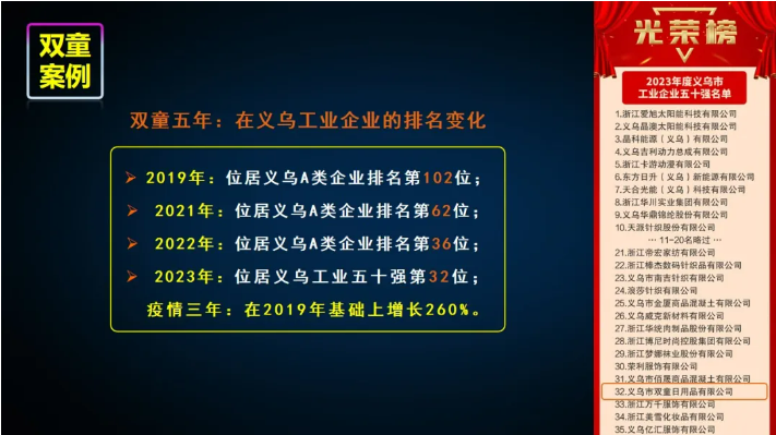 2023年,平臺整體增長(cháng)35.24%;平臺稅收增長(cháng)23.30%,成功登榜“納稅千萬(wàn)元以上工業(yè)企業(yè)”和“義烏市工業(yè)企業(yè)五十強”!