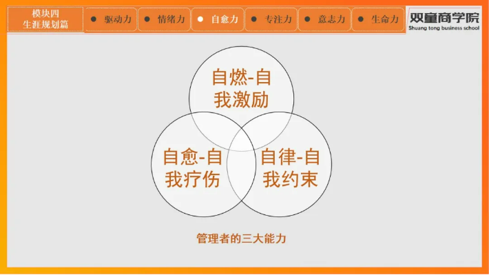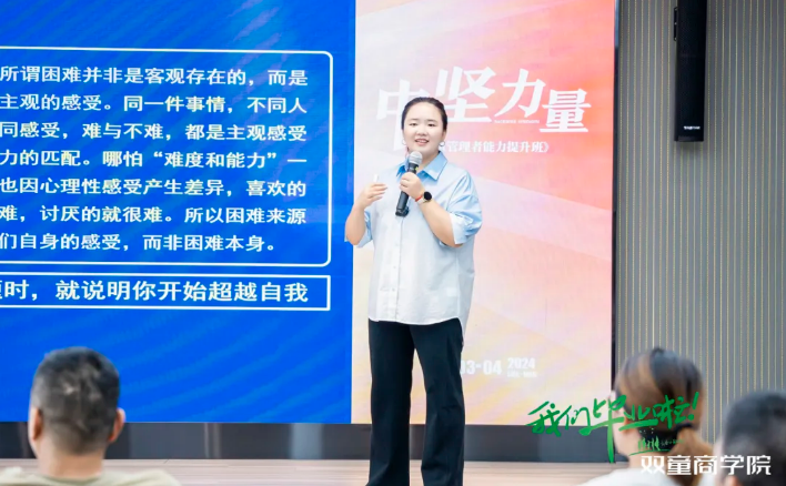 從文宣員到成長(cháng)為創(chuàng )業(yè)體總經(jīng)理,再到帶領(lǐng)全體雙童商學(xué)院的小伙伴一步步走得更好,都離不開(kāi)強大的驅動(dòng)力。同時(shí),面對成長(cháng)中的挫折,她也向大家展示了掌控情緒力、自愈力、專(zhuān)注力、意志力的重要性!