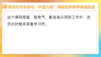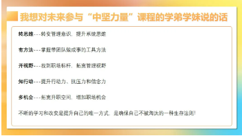 在完成了思維有高度、帶人有溫度、做事有力度三個(gè)模塊課程學(xué)習后,【中堅力量】將最后的落腳點(diǎn)放在了“成長(cháng)有速度”!