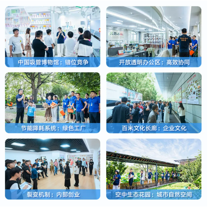 ?中國吸管博物館:學(xué)員們可以近距離觀(guān)看“一根吸管”的千變萬(wàn)化,直觀(guān)體驗產(chǎn)品創(chuàng )新與錯位競爭戰略的震撼力,深刻感受產(chǎn)品創(chuàng )新和錯位競爭思維模型帶來(lái)的強大能量。?“雙童”全透明辦公區:學(xué)員們深入了解“雙童”獨特的企業(yè)文化如何促進(jìn)溝通與協(xié)作,學(xué)習如何推動(dòng)公司高效運轉。?創(chuàng )業(yè)共享平臺:學(xué)員們可以學(xué)習到“雙童”如何通過(guò)自主制創(chuàng )業(yè)裂變機制激發(fā)員工積極性,實(shí)現從被動(dòng)到主動(dòng)的轉變。
