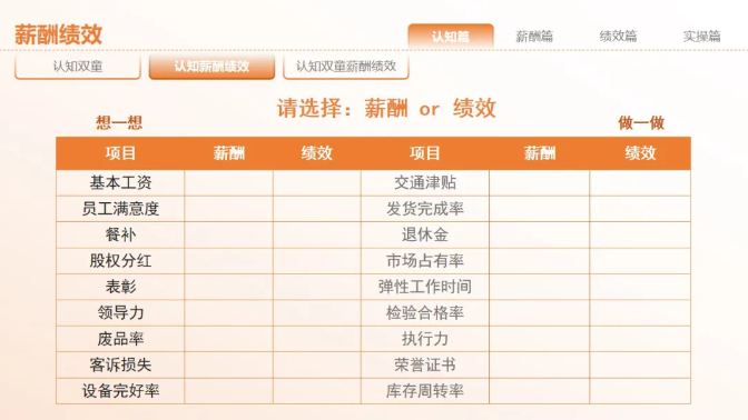 在整個(gè)課程交付中,李二橋老師會(huì )將課程拆解為認知篇、薪酬篇、績(jì)效篇和實(shí)操篇等四大板塊,循序漸進(jìn),讓學(xué)員們從對薪酬和績(jì)效的認知到實(shí)操慢慢過(guò)渡。