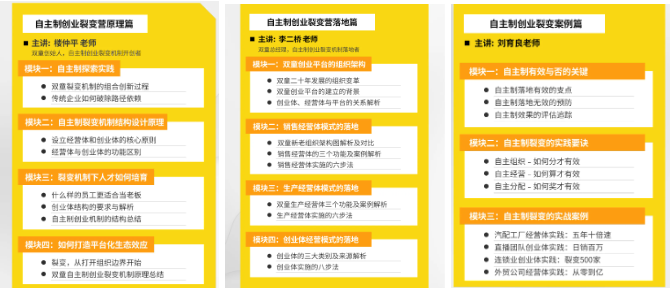 而《自主制創(chuàng )業(yè)裂變營(yíng)》就是依托該機制,把“雙童”的落地實(shí)操方法與成功經(jīng)驗經(jīng)驗有機結合,不斷打磨、升級的一套針對中小微企業(yè)的管理課程。