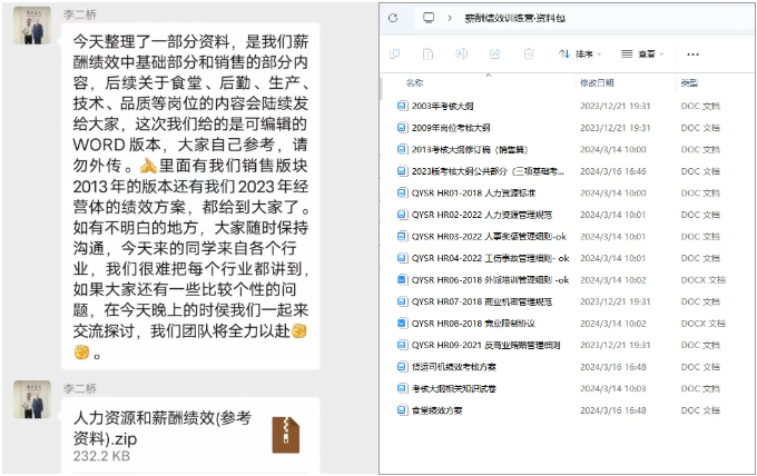 在課程交付完成之后,課研組踐行“掏家底”交付的原則,將“雙童”的薪酬績(jì)效體系和人力資源相關(guān)資料全部打包給到學(xué)員!