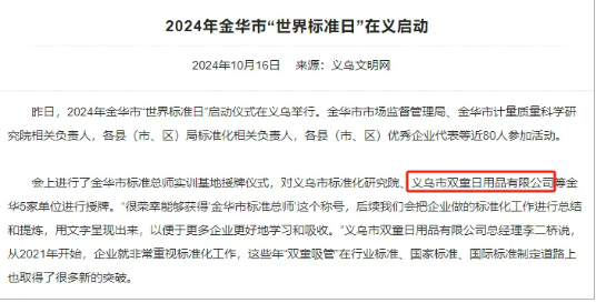 細心的朋友會(huì )發(fā)現,幾乎每次跟標準制定相關(guān)的宣傳、獎項榮譽(yù)頒布,都能看到雙童的身影。總經(jīng)理李二橋在接受本次活動(dòng)采訪(fǎng)時(shí),更坦言“很榮幸能夠獲得‘金華市標準總師’這個(gè)稱(chēng)號,后續我們會(huì )把企業(yè)做的標準化工作進(jìn)行總結和提煉,用文字呈現出來(lái),以便于更多企業(yè)更好地學(xué)習和吸收。