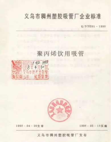 終于在1997年10月,由“雙童”前身的義烏市稠州塑膠吸管廠(chǎng)起草的《聚丙烯飲用吸管》企業(yè)標準順利通過(guò)審核,于1998年4月正式發(fā)布,成為吸管行業(yè)最早的產(chǎn)品標準。從此,“雙童”打開(kāi)了產(chǎn)品在商超場(chǎng)所的銷(xiāo)售渠道,實(shí)現了傳統家庭作坊企業(yè)向正規工廠(chǎng)的轉型。