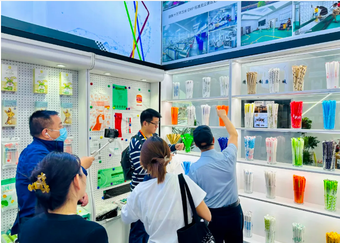 “雙童”展位上琳瑯滿(mǎn)目的吸管