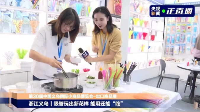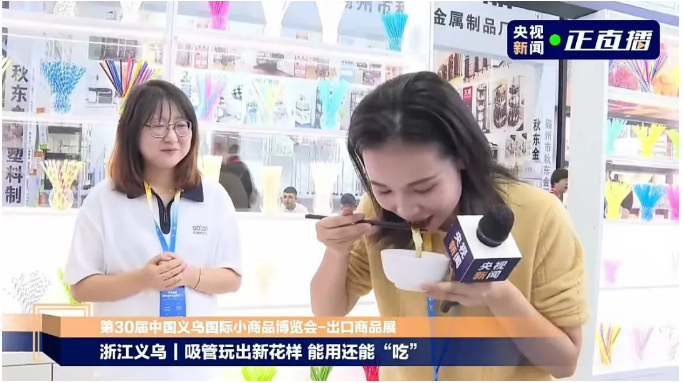 義博會(huì )第二日,在央視新聞直播中亮相了雙童展位及雙童“可食用淀粉吸管”,讓記者驚嘆不已,這樣一根看似不起眼的吸管竟然也能玩出新創(chuàng )意,不僅實(shí)用性極強,還實(shí)現了可食用的新體驗!