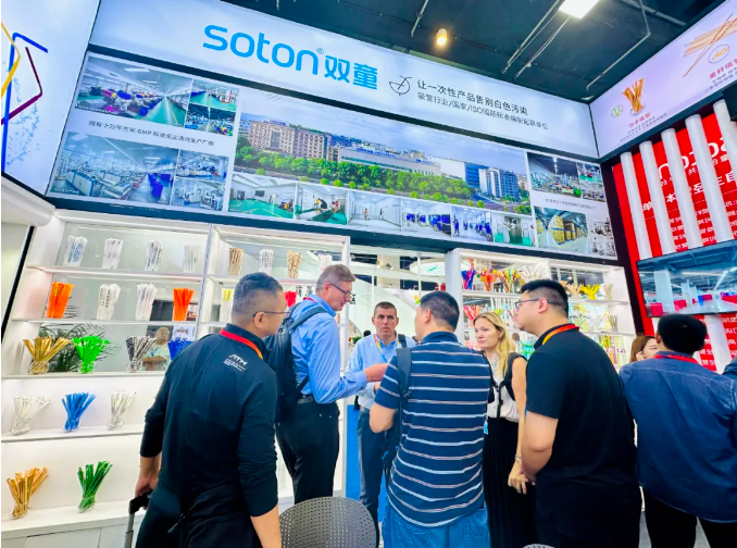 走過(guò)繁忙和充滿(mǎn)活力的雙童展位現場(chǎng),展位內柜前豐富多彩的吸管映入眼簾,稱(chēng)此展位為“迷你吸管博物館”亦恰如其分。而在眾多展品中,“雙童”在此次義博會(huì )上推出的可降解吸管系列尤為亮眼,備受中外客戶(hù)的青睞與好評!