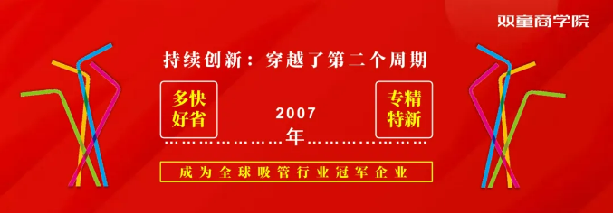 先后三次“開(kāi)門(mén)”,讓雙童完成了從作坊企業(yè)到規范經(jīng)營(yíng)的蛻變,也奠定了雙童成為全球最大吸管企業(yè)的基礎。通過(guò)意識領(lǐng)先,雙童這個(gè)企業(yè)穿越了第一個(gè)周期,實(shí)現了吸管也能開(kāi)門(mén),草根也能優(yōu)雅。