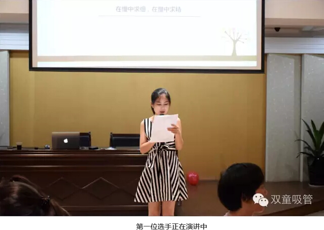 第一位選手演講的題目是《在慢中求細,在慢中求精》。通過(guò)兩位畫(huà)家畫(huà)畫(huà)的故事來(lái)說(shuō)明了慢工出細活的道理,慢才更用心,慢才更精細,最終出來(lái)的作品也就會(huì )更精致、更完美。