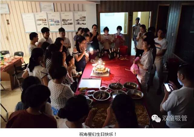 演講結束后,大家進(jìn)行著(zhù)各個(gè)環(huán)節,唱生日歌、吹蠟燭、切蛋糕!我們每月的生日會(huì )都傾注了公司對員工的親切關(guān)愛(ài),讓大家都以雙童為家,齊心協(xié)力同公司一同成長(cháng)!