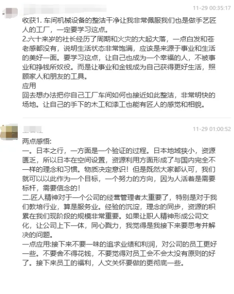 所以,在第一天的研學(xué)結束之后,同學(xué)們不僅收獲了很多關(guān)于產(chǎn)品創(chuàng )新、精細化管理等企業(yè)經(jīng)營(yíng)的新靈感,對自身企業(yè)未來(lái)的經(jīng)營(yíng)方向也有了不一樣的感觸: