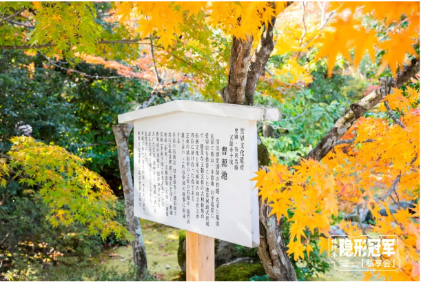 看過(guò)嵐山人氣景點(diǎn)“渡月橋”后,大家一同走進(jìn)世界遺產(chǎn)紅葉庭院—天龍寺?!安茉闯赝@”是天龍寺賞楓最大的亮點(diǎn),從天龍寺正門(mén)到曹源池庭院一路上是一條紅葉參道,散落的紅葉如厚厚的紅色地毯,艷麗奪目。庭院中,游人如織,同學(xué)們都在找尋最佳的拍攝位置合影留念。