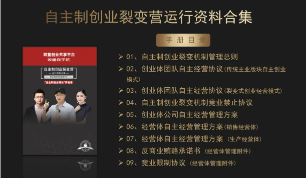 3、交付自主制創(chuàng )業(yè)裂變模式的各項規則、文本、合同等書(shū)面資料