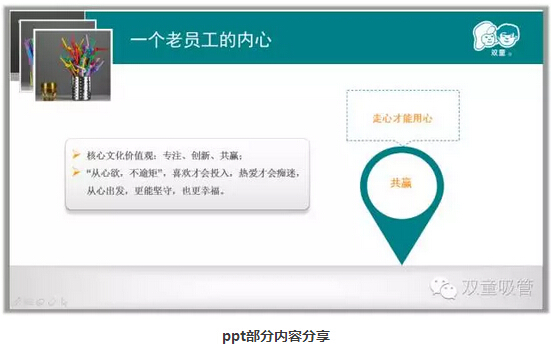 學(xué)習會(huì )進(jìn)行到最后,我們的李總也上臺發(fā)言了。他說(shuō),這本教材書(shū)籍其實(shí)是當家人樓總和幾位主要的高層領(lǐng)導全部看過(guò)這本書(shū)后,覺(jué)得這本書(shū)相當契合我們雙童的企業(yè)文化,決定送給每個(gè)員工一本!也希望大家可以提前預習,以后多多上臺發(fā)表讀后感!哈哈,放心吧,吸管妞今天晚上就看!