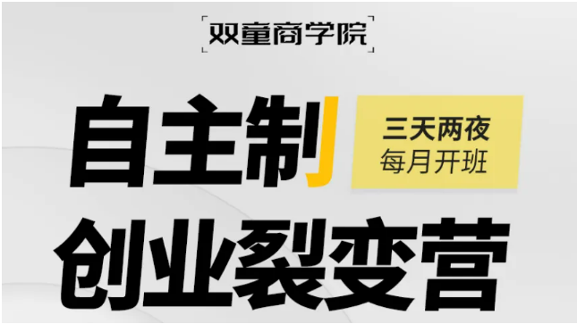 為幫助更多的中小企業(yè)實(shí)現員工從“讓我做”到“我要做”的轉變,贏(yíng)得明年的開(kāi)年紅頭彩,雙童商學(xué)院將在年前1月8日加開(kāi)一期《自主制創(chuàng )業(yè)裂變營(yíng)》!