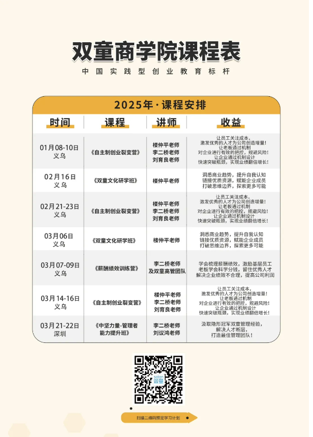 其實(shí),樓總陪同張維迎教授和辛莊課堂同學(xué)們所走的參觀(guān)路線(xiàn),正是《雙童文化研學(xué)班》的現場(chǎng)課堂部分。在游學(xué)結束后,辛莊課堂的同學(xué)們也表示,雙童的經(jīng)營(yíng)理念、長(cháng)期主義以及創(chuàng )始人樓仲平韌性成長(cháng)的故事,讓大家深受啟發(fā)。如果你也對“雙童”充滿(mǎn)好奇,歡迎走進(jìn)《雙童文化研學(xué)班》~關(guān)于“辛莊課堂”