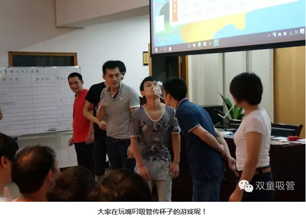 先不講PPT,玩游戲?啥游戲?往下看你就知道啦!現場(chǎng)被分為兩組,大伙用嘴叼著(zhù)吸管傳杯子。用時(shí)最短的是同一車(chē)間較為熟悉的團隊,他們在游戲前經(jīng)過(guò)溝通協(xié)商,可見(jiàn)團隊協(xié)作的重要性呢!
