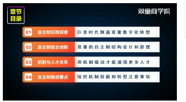 他以雙童內部對裂變機制的實(shí)際運行狀況為案例教材,將課程分為五大模塊,16個(gè)小節,涵蓋了落地實(shí)操環(huán)節中會(huì )遇到的各種問(wèn)題,盡可能最詳細、最全面地交付給學(xué)員操作方法!