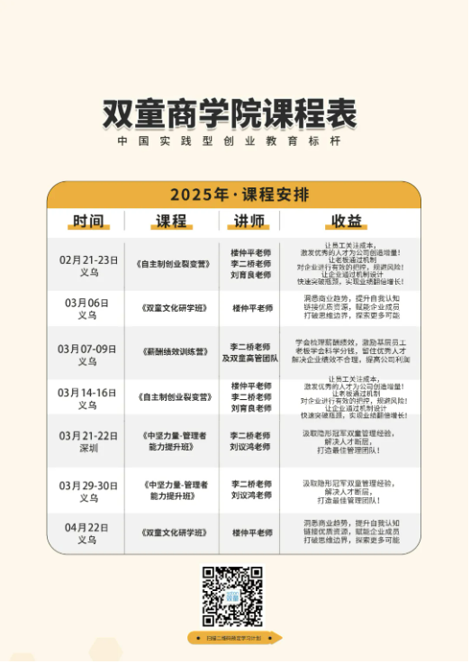 如果你也對“雙童”充滿(mǎn)好奇,也想讓企業(yè)成為行業(yè)的領(lǐng)導者,歡迎走進(jìn)3月6日【雙童文化研學(xué)班】,與上百位優(yōu)秀的創(chuàng )業(yè)者一起學(xué)習!少量名額,歡迎咨詢(xún)鎖定!