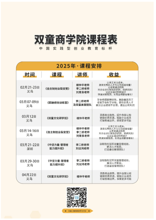 如果你也對“雙童”充滿(mǎn)好奇,渴望深入了解“雙童”的企業(yè)文化,歡迎走進(jìn)2月25日【雙童文化研學(xué)班】,與上百位優(yōu)秀的創(chuàng )業(yè)者一起探索和學(xué)習!少量名額,歡迎咨詢(xún)鎖定!