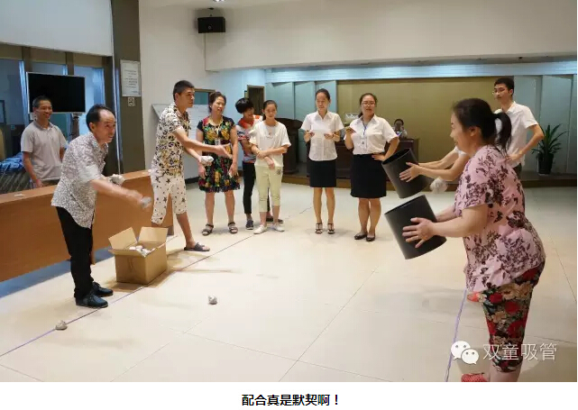 “太極推推樂(lè )?”這個(gè)游戲是讓每組夫妻派出一人應戰。對抗的兩人面對面站立,雙方相互之間輕推對方的手掌,對方的腳最先離開(kāi)原來(lái)站立的點(diǎn),誰(shuí)就輸了??炜?!我們的妻子們可賣(mài)力啦,丈夫們也毫不示弱,場(chǎng)面可真是熱鬧呀!