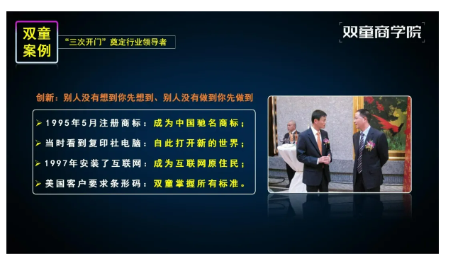 正是因為這次偶然的機遇,讓“雙童”邁出了企業(yè)的品牌建設發(fā)展最為關(guān)鍵的一步!