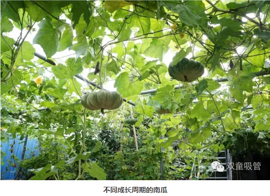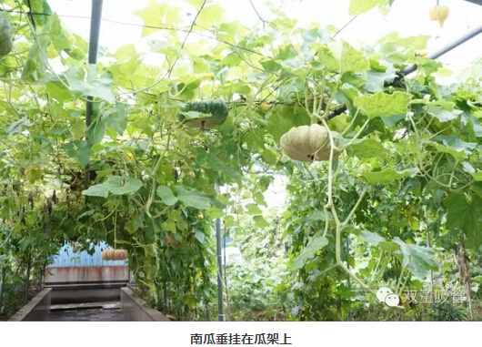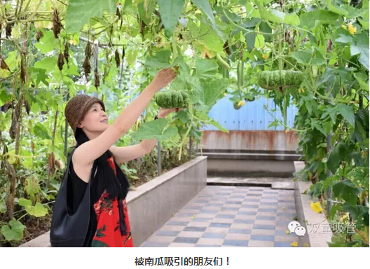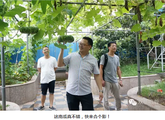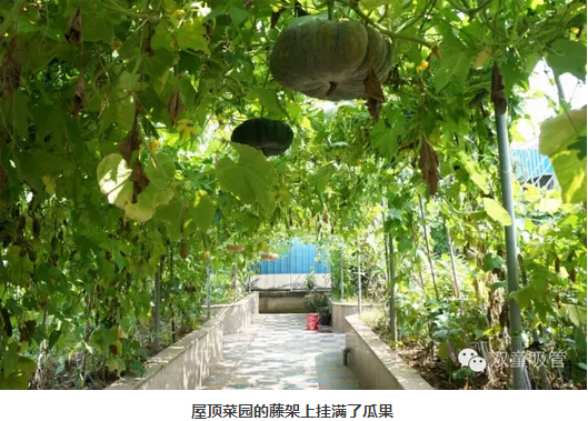 這樣的場(chǎng)景總會(huì )吸引來(lái)“雙童”參觀(guān)的朋友們駐足觀(guān)賞,拍照留念,贊嘆屋頂菜園的瓜果!