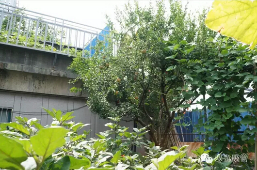 一旁石榴樹(shù)也來(lái)湊熱鬧!因為有著(zhù)1.5米厚的土層滋養,樓頂的這一株石榴樹(shù)也長(cháng)出了果實(shí),再過(guò)不久,“雙童”的吃貨們又有???!
